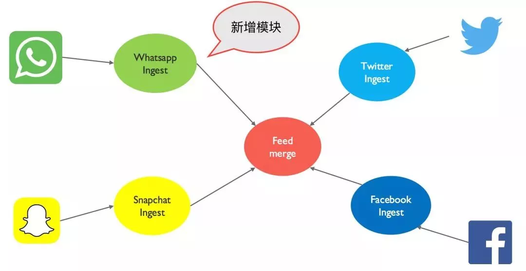 又过了一段时间,这一次是 Jonnathan 自己要对系统做调整了,原来 Snapchat 最近大火,他部署的系统频受压力,性能下降。为了解决这个问题,Jonnathan 果断增加了额外 2 台容器来同时支撑 Snapchat 信息的采集和处理。